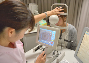 術前に患者様の個々の眼の特徴である角膜屈折力、角膜形状を計測します。
